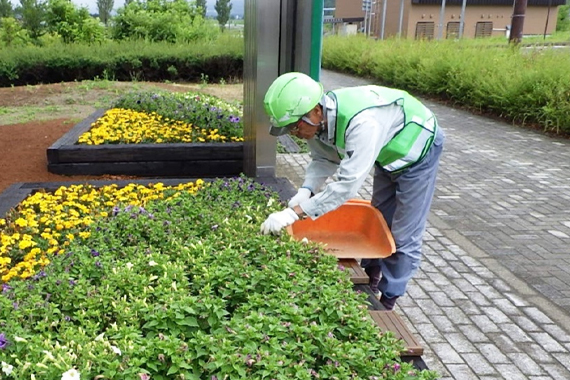 連絡施設(インターチェンジ)や休憩施設(サービスエリア)の景観向上や、走行環境の保持等の植栽作業を請負っております。