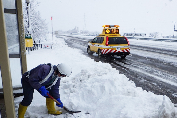 冬季に高速道路を安全に通行できるよう、雪氷対策作業を請け負っております。冬季は24H体制で雪氷対策をフォローしております。